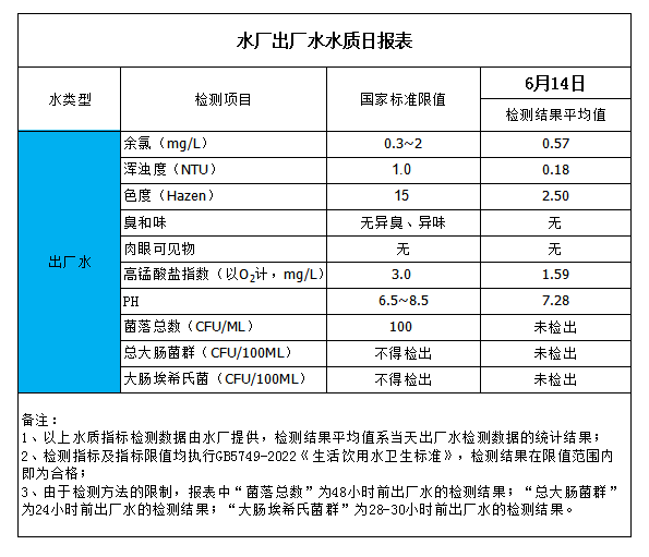 水廠出廠水水質(zhì)日報(bào)表(2023-6-14)