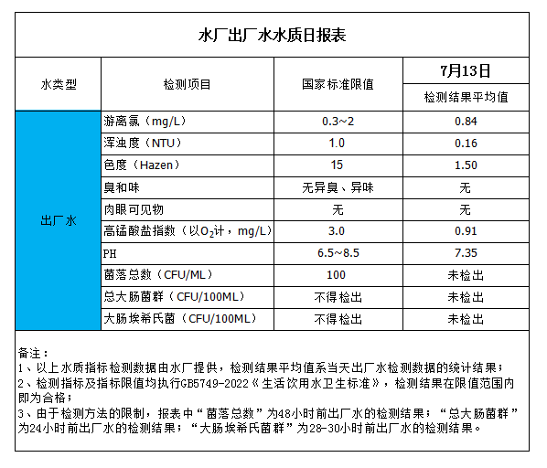 水廠出廠水水質日報表(2023-7-13)