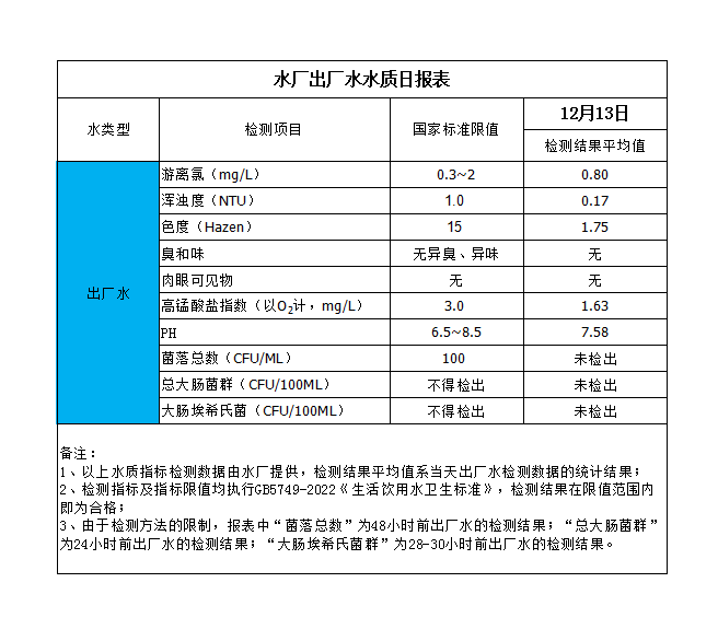 水廠出廠水水質日報表(2023-12-13)
