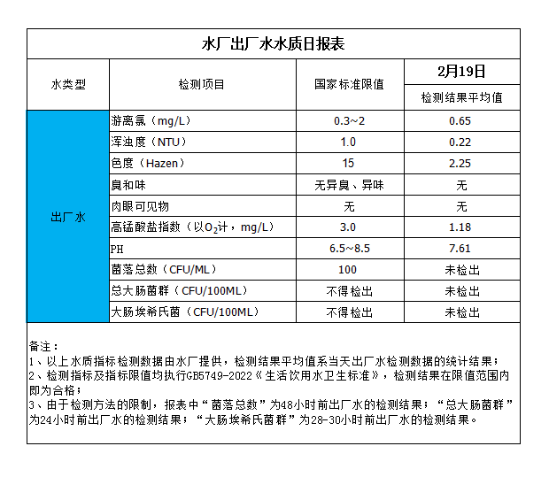 水廠出廠水水質(zhì)日?qǐng)?bào)表(2024-2-19)